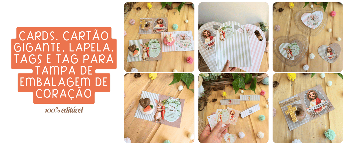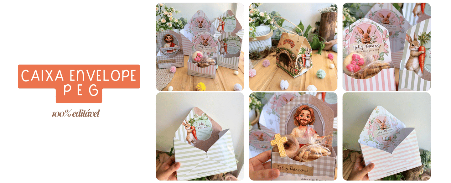 Venda muito e encante seus clientes com embalagens que fazem a diferença! Preparamos um Pack especial de Páscoa com lindos modelinhos de embalagens, 100% editáveis, prontos para personalizar e surpreender. Ideal para quem quer se destacar, agregar valor e transformar cada venda em uma experiência inesquecível.